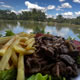 O restaurante conta com pratos típicos da culinária goiana, como o frango caipira com pequi, variedade de preparos de peixes, saladas e petiscos diversos.
